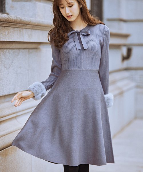 冬を愛らしく彩る 取り外し可能な袖口ファー付きボウタイりぼんニットワンピース