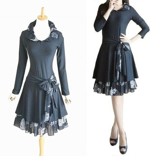 着痩せ ワンピース 秋 きれいめ ワンピース 長袖 春 ワンピース 花柄 膝丈 ワンピース ドレス パーティードレス お食事会 ミディアム フレアワンピース フレア ワンピース 花柄 ワンピース 大きいサイズ お出掛け 発表会 ブラック 紫 パープル 黒 ベージュ 日本代購流行